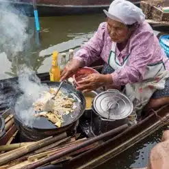 Voyagez en bateau pour admirer de magnifiques orchidées dans une ferme. Découvrez comment les aliments sont cultivés et goûtez les friandises locales comme les biscuits de riz et les fruits tropicaux, avant de continuer vers le marché Don Wai situé sur le bord de la rivière. C’est l’un des plus vieux marchés de Thaïlande datant du début du XXe siècle et qui conserve encore aujourd’hui des caractéristiques de cette époque. Vous serpenterez entre les étals et découvrirez les plats exotiques et colorés de la cuisine locale.
