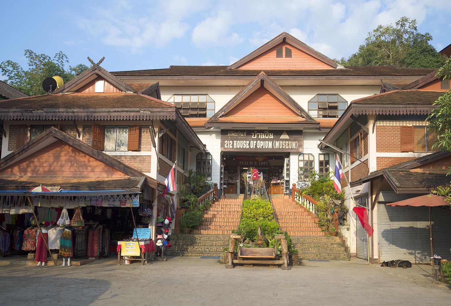 Le Triangle d’or est cette terre commune où se croisent le Myanmar, le Laos et la Thaïlande. De 1920 à 1965, le Triangle d’or est la principale région de production d’opium par sa plantation de pavots ce qui l’a rendu très connu pour son royaume d’or blanc.Pendant de nombreuses années, cette terre a été le centre du commerce de l’opium dont la Thaïlande avait basé quasiment toute son économie dessus. Officiellement, à ce jour, ce commerce a disparu.Le Musée de l’opium, situé à Chiang Rai, reprend donc l’histoire de cette production, de son commerce et des plus grands trafiquants de drogue de la région, notamment celle de Khuan Sha appelé également le « seigneur de l’opium » qui fut arrêté en 1996. Ce musée s’étend sur 25 hectares comprenant un centre de recherche, un centre d’éducation sur l’opium, des photos, des objets, de la documentation et bien évidement toutes les techniques de la production, de la culture et des différentes manières de consommer, tout en sachant que l’opium est aujourd’hui considéré comme une substance illicite.Le Musée a pour vocation de sensibiliser ses visiteurs aux risques de cette consommation et aux impacts quelle peut avoir sur l’environnement et la santé de chacun. La visite de ce musée est rendue assez ludique et attractive pour toucher l’ensemble des visiteurs.